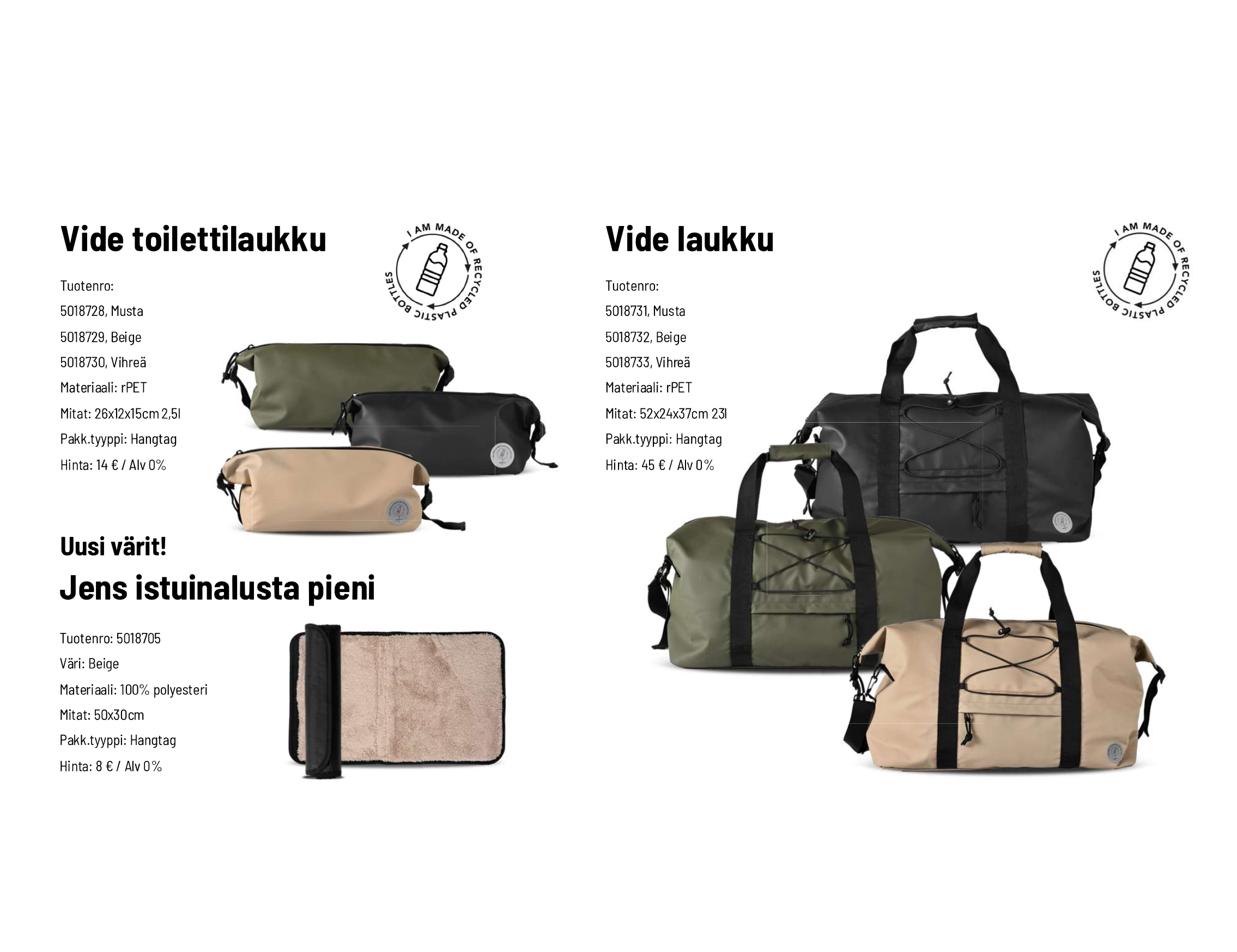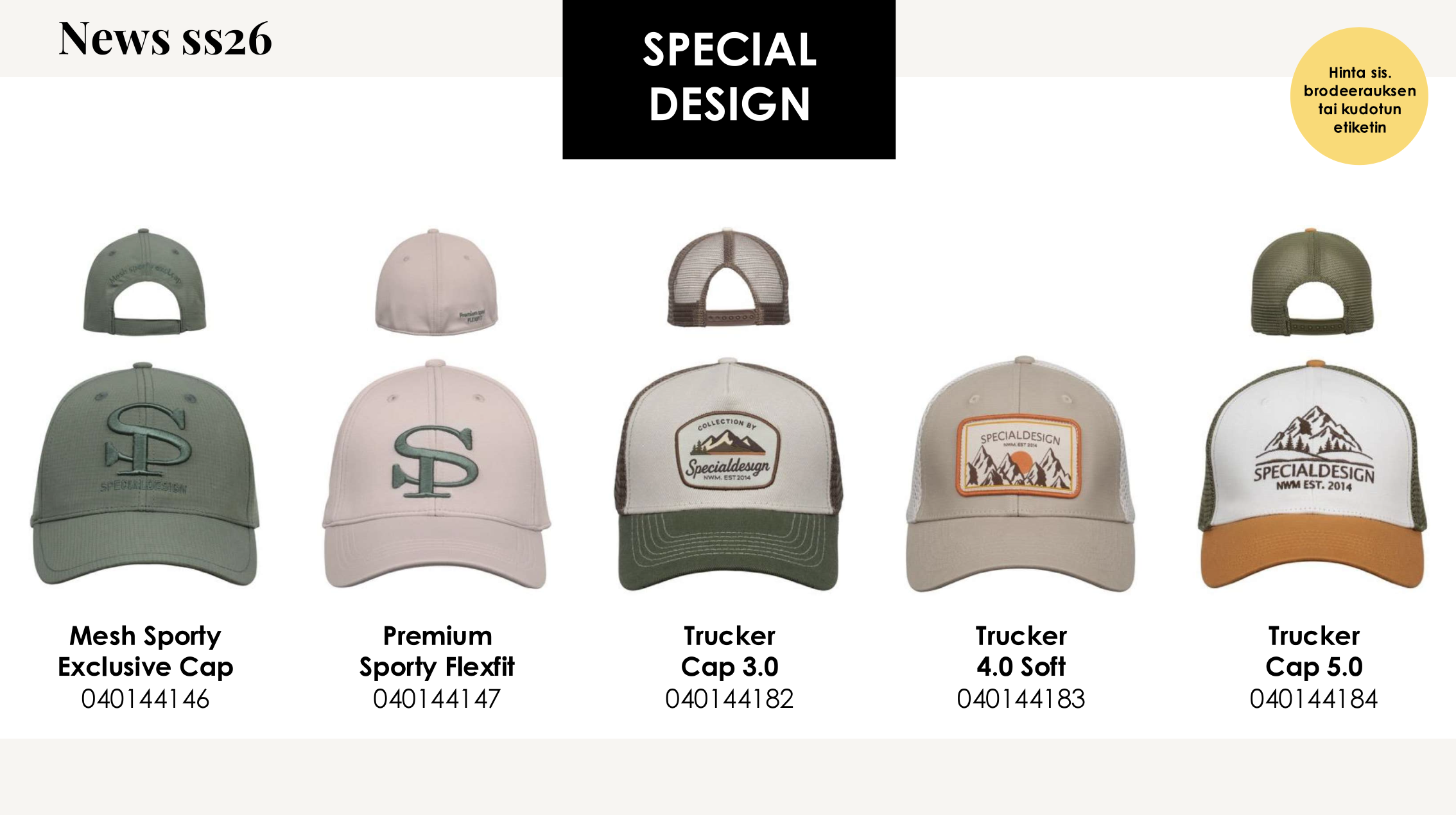 Kesän 2026 uudet tuotteet ovat saapuneet varastoon. Muista henkilökuntaa, sidosryhmiä ja asiakkaita, hinta-laatusuhteeltaan edullisilla tuotteilla. Tuotevalikoimamme on kasvanut jälleen tyylikkäillä ja käytännöllisillä tuotteilla, jotka sopivat erinomaisesti sekä työ- ja edustustilaisuuksiin että vapaa-aikaan.